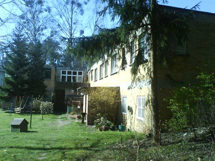 Der Hof öffnet sich zum Forst hin und der Übergang zur vorhandenen Vegetation und dem Gelände ist auokkernd gestaltet. „Mit einer kühlen, dabei feinen Exaktheit macht sich der Bau in der märkischen Landschaft.“ (ZENTRALBLATT 1931b, 222).